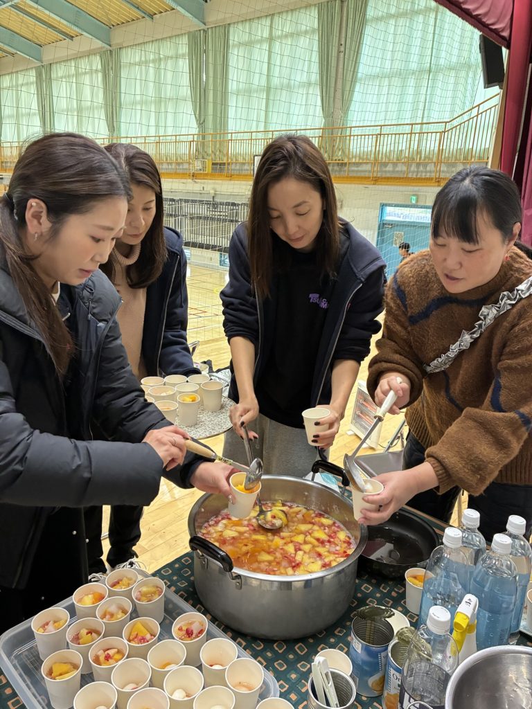 11月29日(土)、今日は2チーム来校の中、監督よりおやつにフルーツポンチが振る舞われました!監督自前の大鍋に、彩り豊かなフルーツと白玉がいっぱい!